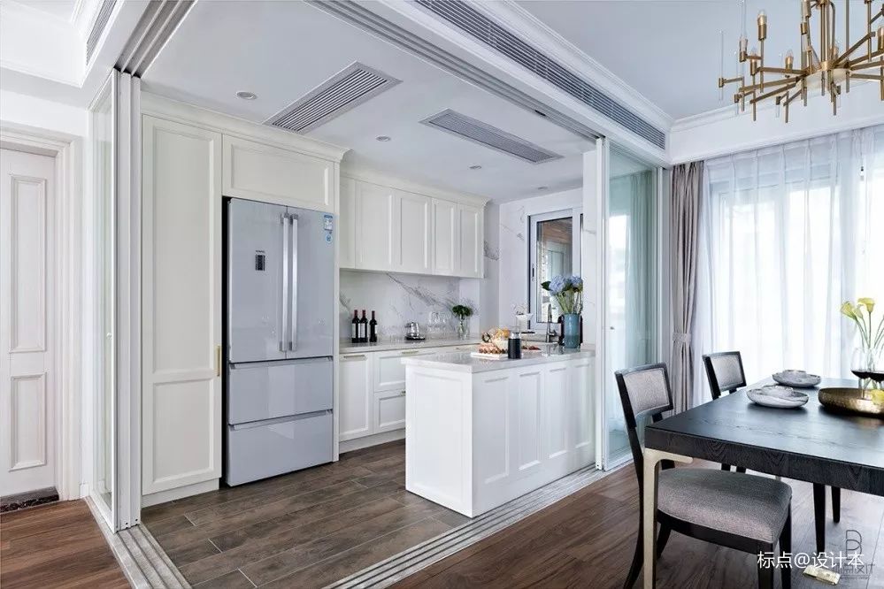 内嵌设计能非常充分的利用墙体空间的面积,比如将冰箱、衣柜、鞋柜等嵌入墙体。你会发现嵌入式的设计让原本两三件家具功能合并同类项,不仅空间节省了,而且可以让杂乱的场景轻松隐身。